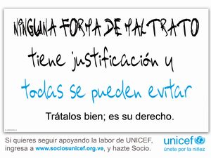 Desde el 29 de octubre hasta el 30 de noviembre de 2012 se realizará el programa de recaudación en línea (Aprovecha.com) con el apoyo de la empresa Grupo Aprovecha.com, con la finalidad de recaudar recursos para ponerle “Punto y final al maltrato”. Con estos recursos UNICEF desarrollará acciones para que los niños, niñas y adolescentes reciban buen trato, especialmente en el hogar por parte de sus madres, padres, representantes o responsables.